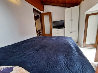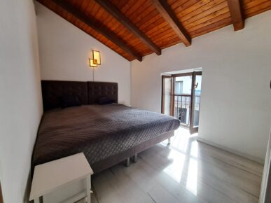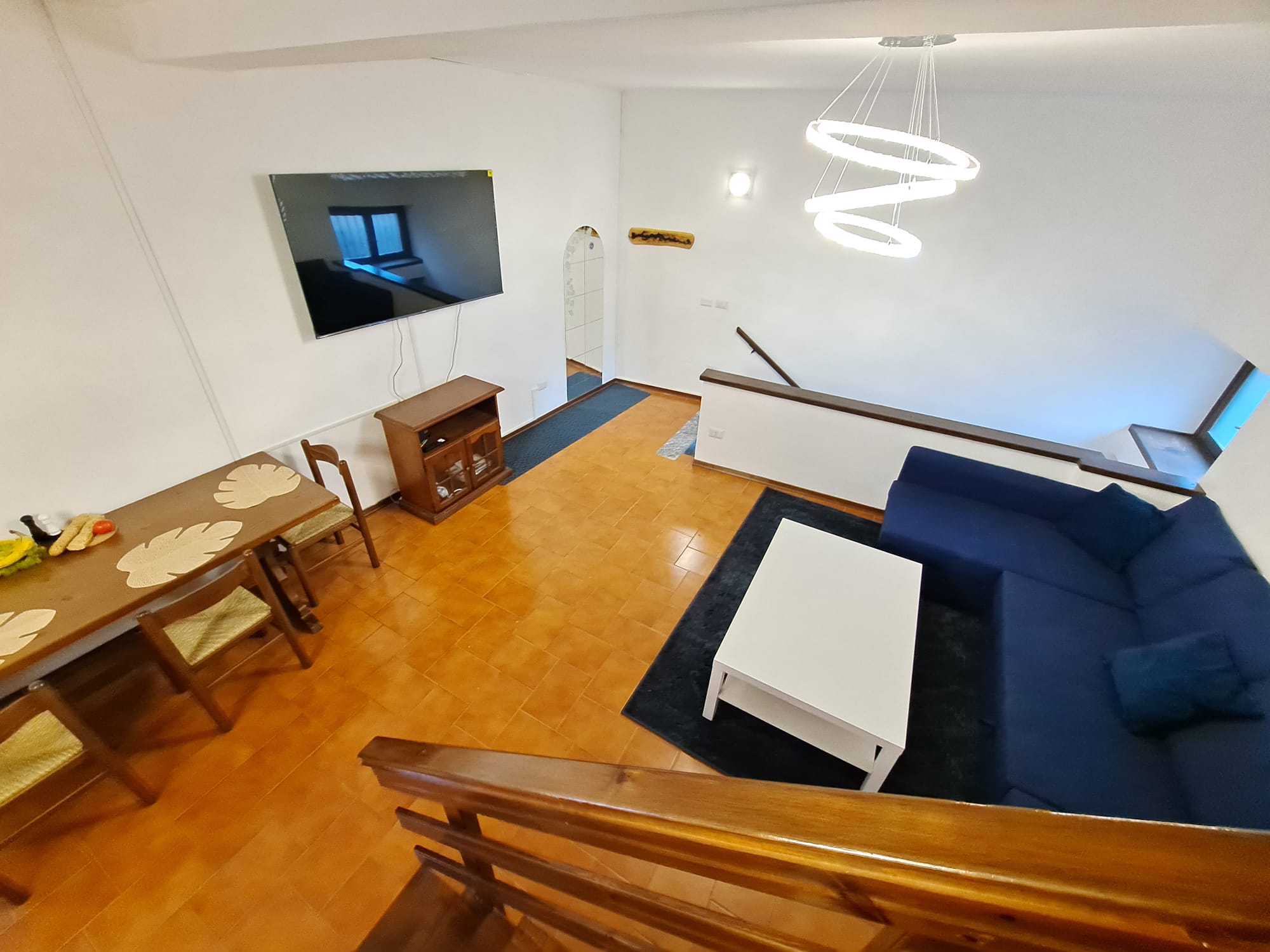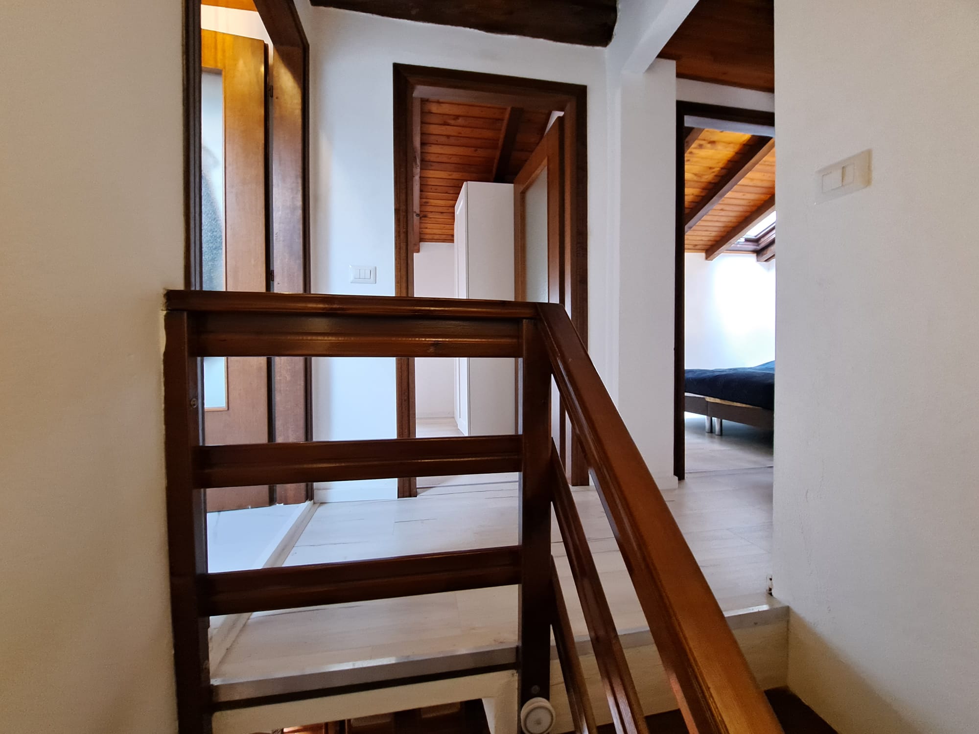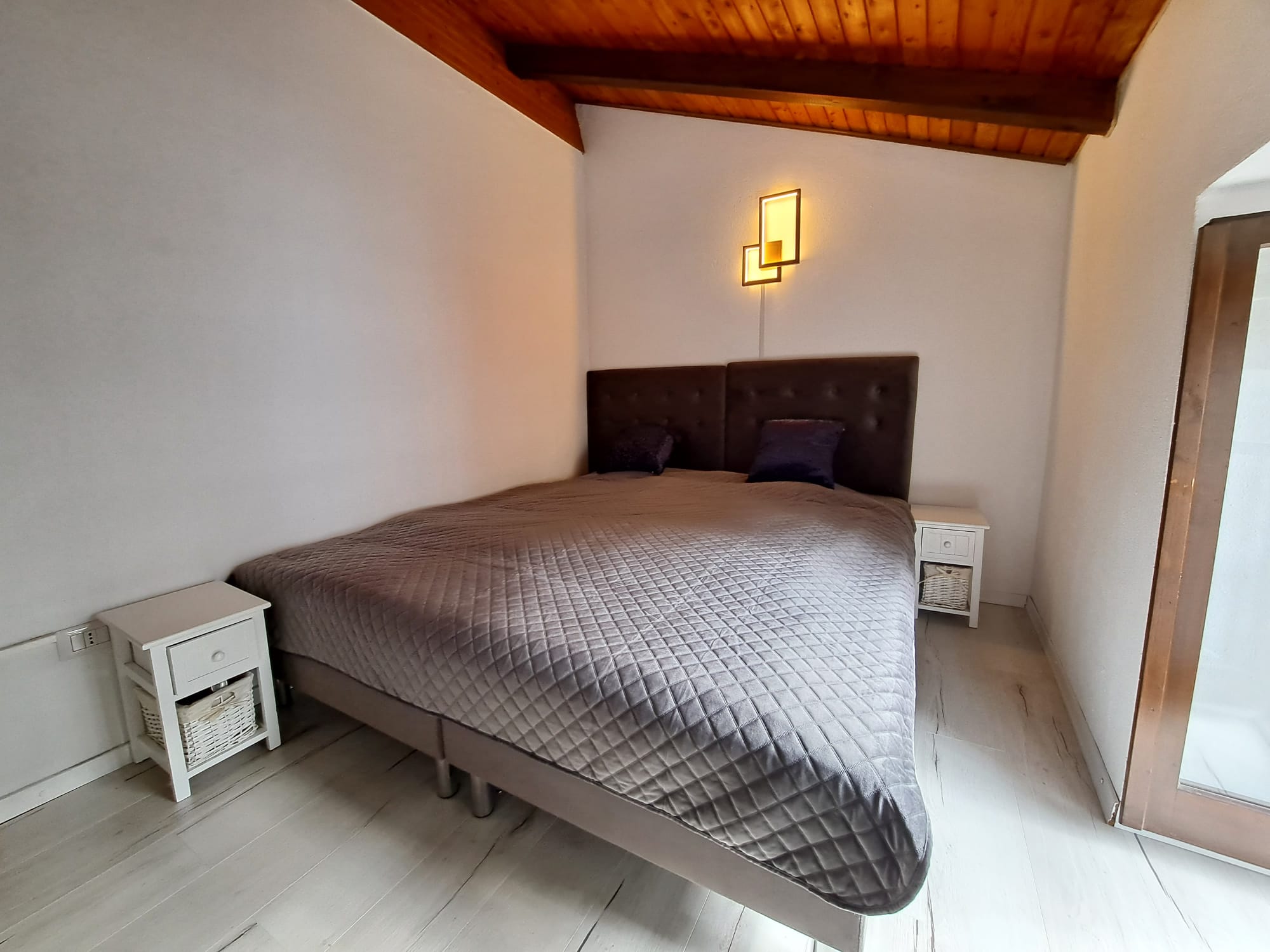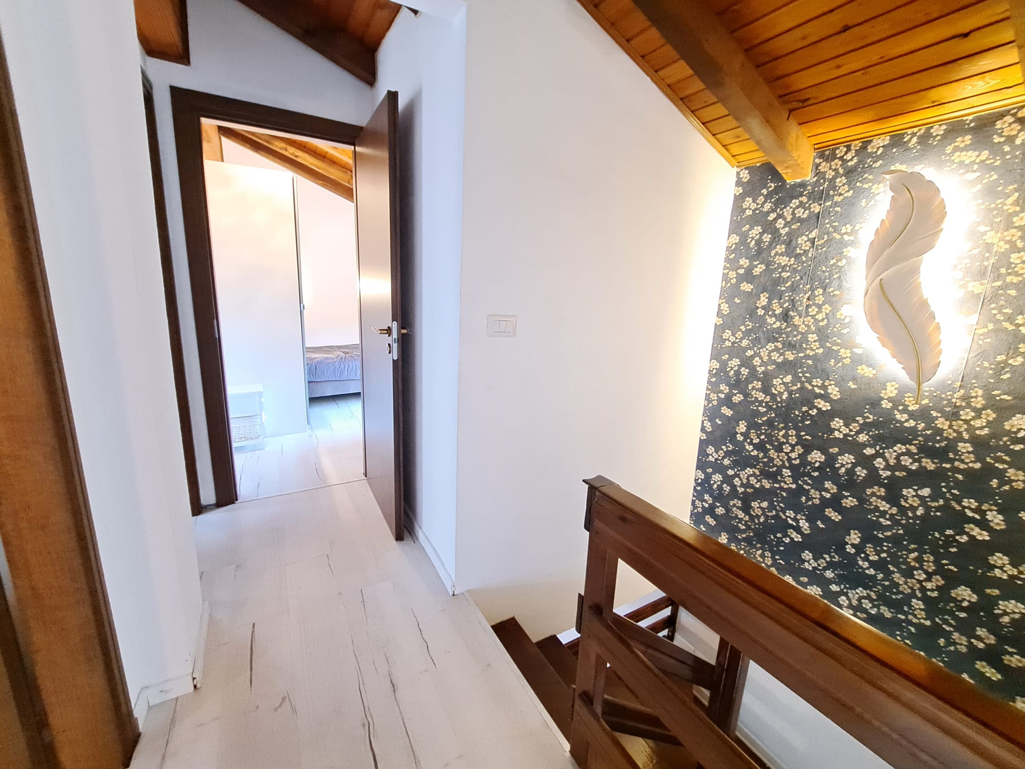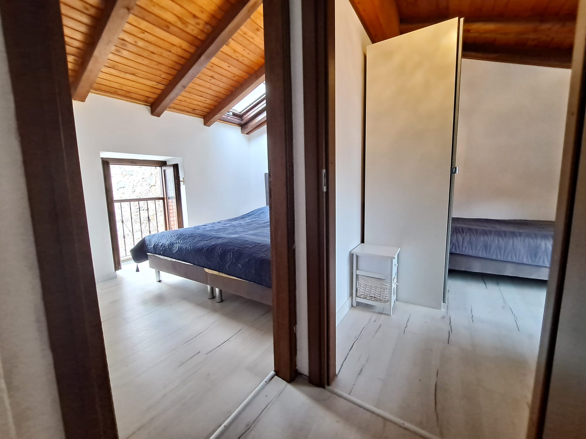 Upstairs, in the privacy of the house, there are 3 bedrooms. 2 with single beds, connectable, and 1 bedroom with a double bed. Here there is also a bathroom with a shower, bidet, and toilet.
